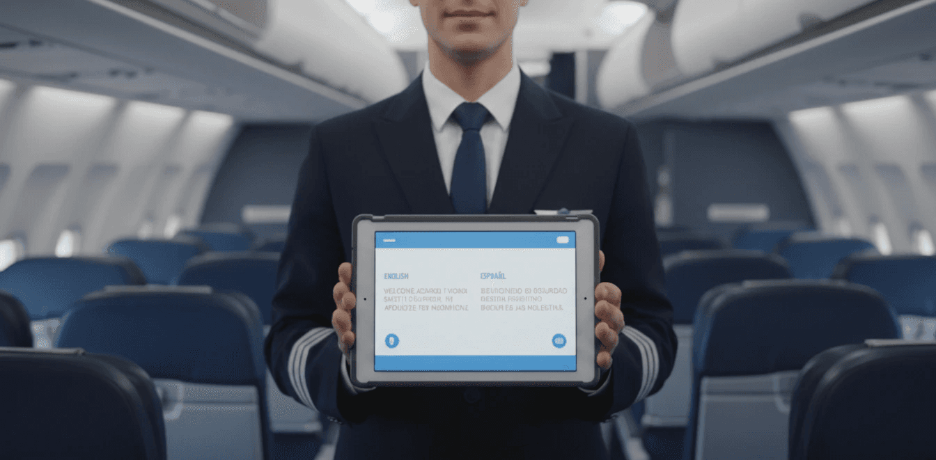 Instant translation for gate agents, flight crews, customer support, and global travelers.