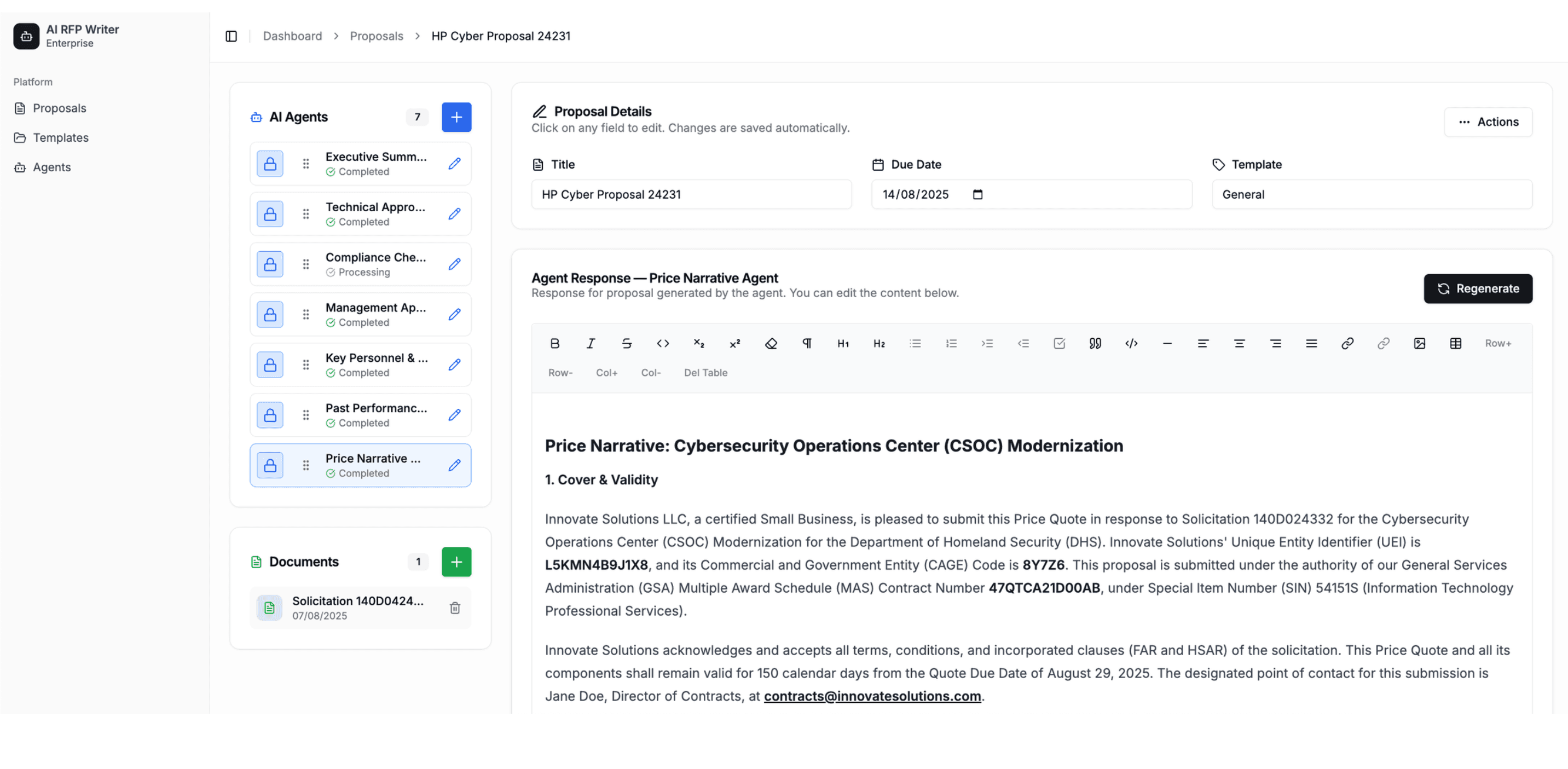 Produce complete, structured first-draft proposals in minutes while increasing bid volume without adding headcount.