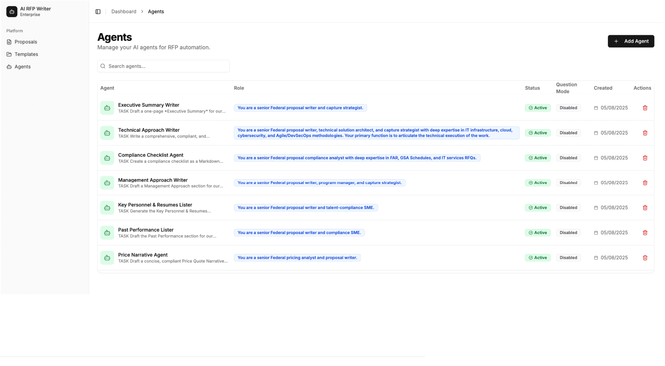 • Multi-agent workflows optimized for proposal structure